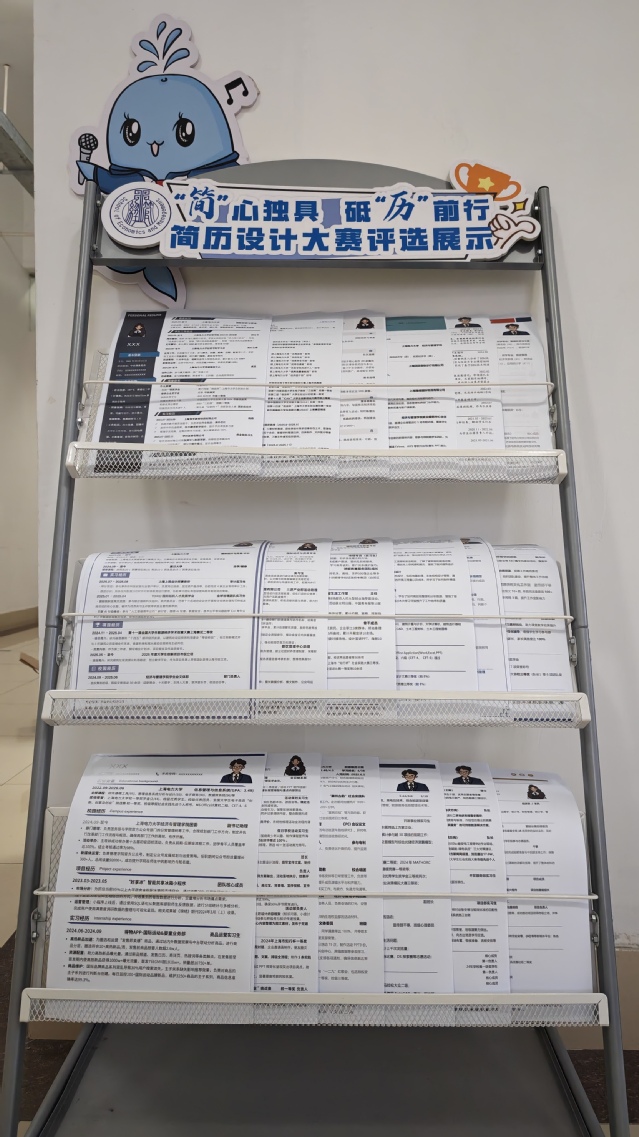 为深化以赛促学成效,学院在公共区域精心设置了“优秀简历展示角”,将获奖作品隐去个人信息后制作成可视化模板长期陈列,方便员工随时参考借鉴。展示角不仅呈现了排版设计上的亮点,更通过模块化解析引导员工理解如何有针对性地突出专业优势、量化实践成果、优化表达逻辑。这一举措使赛事成果转化为可持续使用的学习资源,推动简历撰写从单一竞赛项目延伸为常态化、自主化的职业能力训练环节,深受员工欢迎。