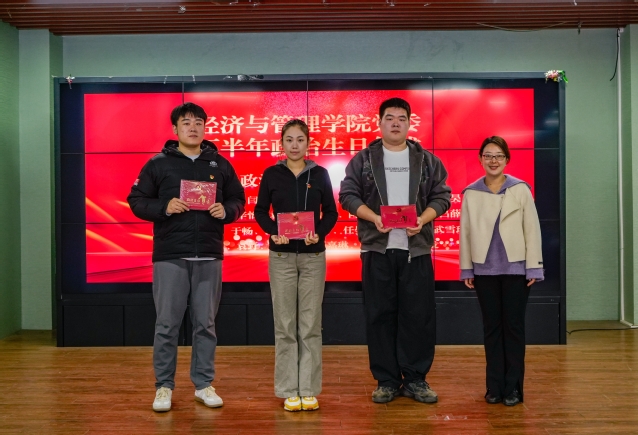 然后,孟延新为党员代表递上政治生日贺卡。一张小小的贺卡,承载着党组织的深切关怀与殷切祝福,既唤醒了党员们对入党初心的美好记忆,更让大家深刻感受到党组织大家庭的温暖,进一步强化了使命担当意识。在党员寝室授牌环节,周颖为党员寝室代表授予牌匾。这一块块牌匾,既是光荣的荣誉象征,更承载着沉甸甸的责任。
