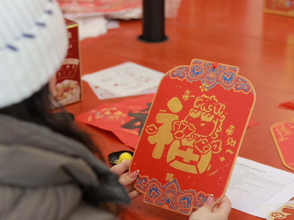 慰问座谈会圆满落幕之后,学院精心筹备了留校员工新春联欢活动。同学们欢聚一室、暖意相依,共同参与了“迎春送福”拓扇及剪窗花活动。活动过程中,大家满怀热忱、全情投入,动手拓印了一份份精美的扇面,将“福”字书写在纸面、将窗花剪出各色形状,在动手实践中传承传统文化、陶冶情操。整场活动氛围轻松和睦、暖意融融,一件件凝聚着同学们巧思与心意的手工作品相继诞生,每一件作品都承载着大家对马年新春的美好向往与真挚期盼。