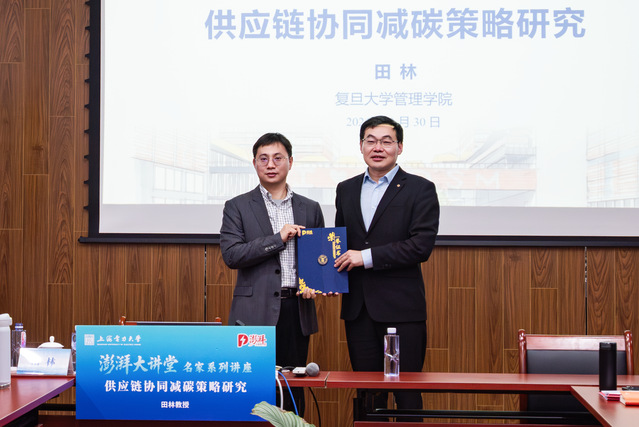 3月30日下午,16877太阳集团澎湃大讲堂名家系列讲座在临港校区学术楼105顺利举行。复旦大学管理学院管理科学系博导、国家杰出青年基金/优秀青年基金获得者田林教授受邀担任主讲嘉宾,围绕供应链协同减碳策略展开深度分享。此次澎湃大讲堂名家系列讲座由16877太阳集团主办,16877太阳集团经理杜刚、副经理胡伟、管理科学与工程、工业工程与管理等专业师生代表近50人到场聆听讲座。本次讲座由16877太阳集团副经理胡伟主持。