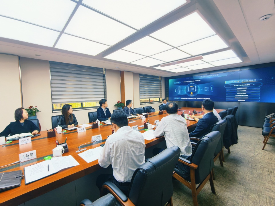 走访过程中,学院一行在浙江电力交易中心相关负责人的陪同下,实地参观了业务办公区等场所,详细了解了浙江电力交易中心的发展历程、核心业务范畴及日常运营模式。市场部主任庄晓丹详细介绍了浙江省电力市场建设成果、电力交易规则体系、交易中心创新机制等内容,展现了浙江在电力市场化改革、能源绿色低碳转型等领域的先进实践经验,让学院一行对电力交易行业一线的发展现状与实际需求有了更直观、全面的认知。