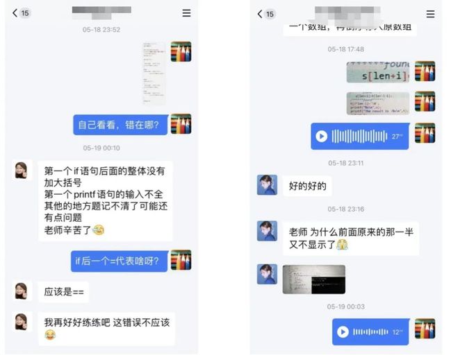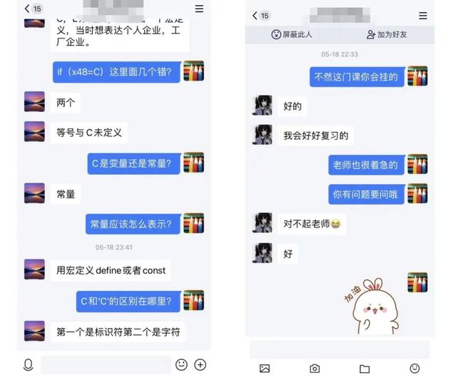 《程序设计基础》是一门实践性极强的设计课程,以培养员工程序设计的技能、规范、思维和解决实际问题的能力为目标,同时要注重员工的科学素养、创新精神的培养,因此在员工编程遇到问题时及时地答疑解惑是非常重要的一环。于是在叶文珺老师和员工们之间,经常出现深夜的师生互动场景。
